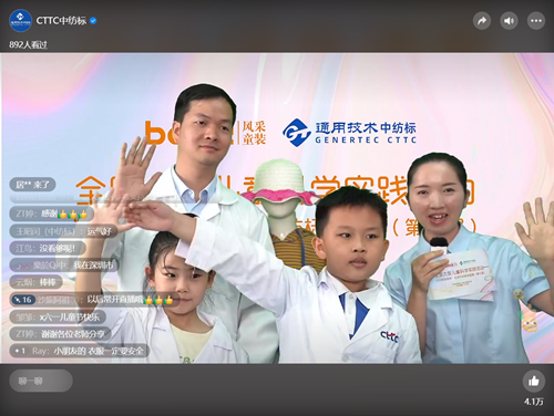 截至2022年,通用技術(shù)中紡標(biāo)已成功舉辦7屆小使者活動(dòng),輻射全國5大區(qū)域,報(bào)名人員近5000人,線下實(shí)驗(yàn)室參觀人員近2000人,線上網(wǎng)友參與人數(shù)近1800人,累計(jì)發(fā)放綠色小使者證書1000余份,參與合作媒體近10家,媒體報(bào)道近百篇(含轉(zhuǎn)載)。以最近一屆視頻號(hào)直播為例,觀看人數(shù)901人,觀看次數(shù)1749次,點(diǎn)贊次數(shù)41253次,評(píng)論次數(shù)650次,分享次數(shù)329次。