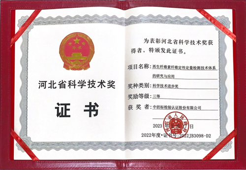 通用技術(shù)中紡院中紡標(biāo)"再生纖維素纖維定性定量檢測技術(shù)體系的研究與應(yīng)用"項目榮獲2022年度河北省科學(xué)技術(shù)進步獎