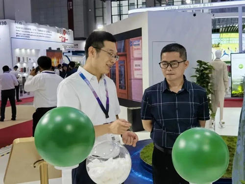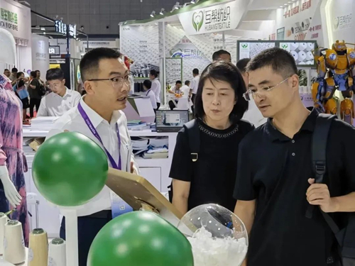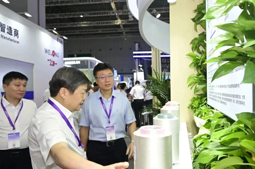 通用技術(shù)集團(tuán)副總經(jīng)理、黨組成員賈大風(fēng)現(xiàn)場實(shí)地調(diào)研考察通用技術(shù)新材展團(tuán),詳細(xì)了解纖維新材料、化纖裝備制造與工程服務(wù)、紡織新材料、標(biāo)準(zhǔn)檢測與技術(shù)服務(wù)等業(yè)務(wù)板塊參展情況,并對此次展示的綠纖、特纖、高纖產(chǎn)品及制品的技術(shù)創(chuàng)新點(diǎn)和經(jīng)濟(jì)效益及社會效益情況進(jìn)行了深入溝通。