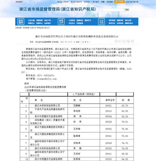 喜訊丨中紡標(biāo)浙江公司在2023年浙江省檢驗檢測職業(yè)技能競賽中喜獲佳績