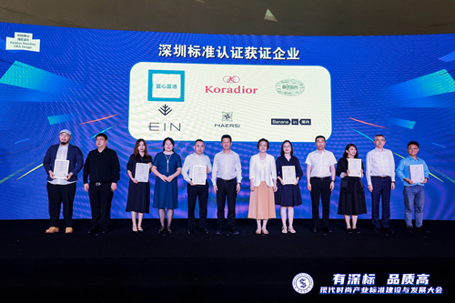 經(jīng)過多年的發(fā)展,深圳已發(fā)展成為國內行業(yè)門類最齊全、原創(chuàng)品牌最集中、產(chǎn)業(yè)配套最完善、規(guī)模集聚效應最顯著的時尚產(chǎn)業(yè)基地之一,服裝時尚產(chǎn)業(yè)在全國處于引領地位,更是被譽為“中國女裝之都”。深圳標準定位于“國內領先,國際一流”的評價體系,以先進標準、卓越品質為評價維度驗證產(chǎn)品性能和服務體驗,突顯產(chǎn)品和服務的競爭優(yōu)勢;以城市品牌的形象,為市場推介優(yōu)秀的產(chǎn)品和優(yōu)質的服務,向社會傳遞高標準引領、高質量發(fā)展的理念。本次有多家服裝企業(yè)產(chǎn)品獲得深圳標準認證證書,與會領導共同為獲證企業(yè)頒發(fā)了深圳標準認證證書。