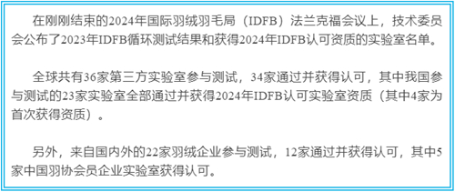喜訊丨中紡標獲得2024年IDFB認可實驗室資質(zhì)