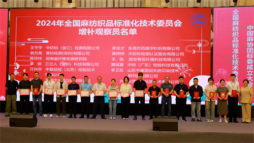 會議表彰了2023年度全國麻紡織品標準化技術(shù)委員會標準化工作的先進單位和個人,同時為新增補的觀察員頒發(fā)了證書。