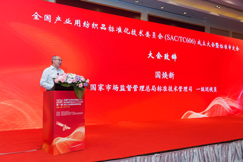 2024年9月18日,第一屆全國產(chǎn)業(yè)用紡織品標準化技術(shù)委員會(SAC/TC606)(以下簡稱“TC606標委會” )成立大會在上海舉行。國家市場監(jiān)督管理總局標準技術(shù)管理司一級巡視員國煥新、處長陳恩成,中國紡織工業(yè)聯(lián)合會會長孫瑞哲,中國紡織工業(yè)聯(lián)合會副會長李陵申,中國工程院院士俞建勇,中國紡織工業(yè)聯(lián)合會科技發(fā)展部副主任孫錫敏、中國紡織科學研究院總經(jīng)理馬詠梅、中國產(chǎn)業(yè)用紡織品行業(yè)協(xié)會會長李桂梅、中國紡織工業(yè)聯(lián)合會科技發(fā)展部處長王國建、中國產(chǎn)業(yè)用紡織品行業(yè)協(xié)會總工程師李昱昊、中紡標檢驗認證股份有限公司副總經(jīng)理章輝、顧問徐路等領(lǐng)導,以及紡織標準相關(guān)機構(gòu)、科研院所、企業(yè)的230余位代表出席會議。