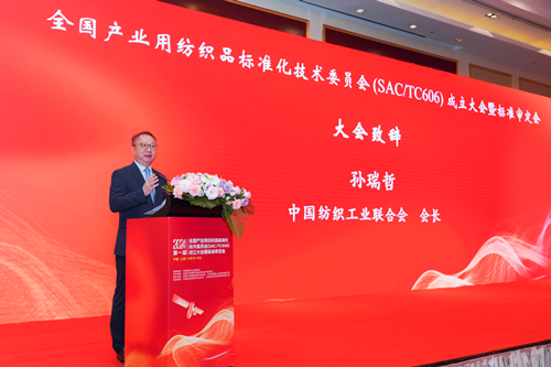 孫瑞哲致辭指出,標準是創(chuàng)新風向標,是合作連通器,是市場通行證,是產(chǎn)業(yè)話語權(quán)。我國紡織工業(yè)已建成紡織品、紡織機械與附件、服裝、家用紡織品、絲綢、化學纖維、產(chǎn)業(yè)用紡織品等7個全國標準化技術(shù)委員會(TC)和18個分技術(shù)委員會(SC),紡織行業(yè)現(xiàn)有國家標準890項,行業(yè)標準1888項,初步形成了涵蓋纖維原料、加工裝備和三大終端應用領(lǐng)域的標準化技術(shù)組織和較為完整的標準體系,標準化工作發(fā)揮了基礎(chǔ)性、支撐性和引領(lǐng)性作用。產(chǎn)業(yè)用紡織品是國家戰(zhàn)略性新興產(chǎn)業(yè)的重要組成,是紡織行業(yè)發(fā)展新質(zhì)生產(chǎn)力的關(guān)鍵領(lǐng)域。但在科技創(chuàng)新和標準引領(lǐng)等方面,仍需進一步形成國際競爭新優(yōu)勢。TC606標委會的成立,將是產(chǎn)業(yè)用紡織品行業(yè)通過標準引領(lǐng)發(fā)展新質(zhì)生產(chǎn)力的重要里程碑。他提出,標委會要挺膺擔當,以標準引領(lǐng)高質(zhì)量發(fā)展。一要有系統(tǒng)性,全局謀劃;二要有前瞻性,與時俱進;三要有全球性,開放合作;以高標準牽引高質(zhì)量發(fā)展。