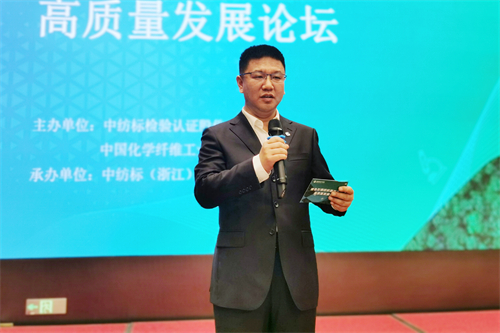 中國(guó)化學(xué)纖維工業(yè)協(xié)會(huì)副會(huì)長(zhǎng)靳高嶺、副總工程師李德利、副總經(jīng)濟(jì)師張凌清、行業(yè)發(fā)展部副主任劉世揚(yáng),中紡標(biāo)副總經(jīng)理郭文松、技術(shù)顧問(wèn)田媛,浙江中紡標(biāo)總經(jīng)理王守宇等領(lǐng)導(dǎo)及嘉賓出席活動(dòng)。論壇由中紡標(biāo)認(rèn)證事業(yè)部副總經(jīng)理劉明主持。