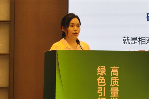 浙江海利環(huán)??萍脊煞萦邢薰緺I(yíng)銷(xiāo)總監(jiān)林靈玲在《循環(huán)經(jīng)濟(jì)中的綠色創(chuàng)新與可持續(xù)發(fā)展》報(bào)告中,圍繞綠色可持續(xù)發(fā)展和綠色纖維產(chǎn)品認(rèn)證在企業(yè)經(jīng)營(yíng)中的意義和應(yīng)用展開(kāi)講解。